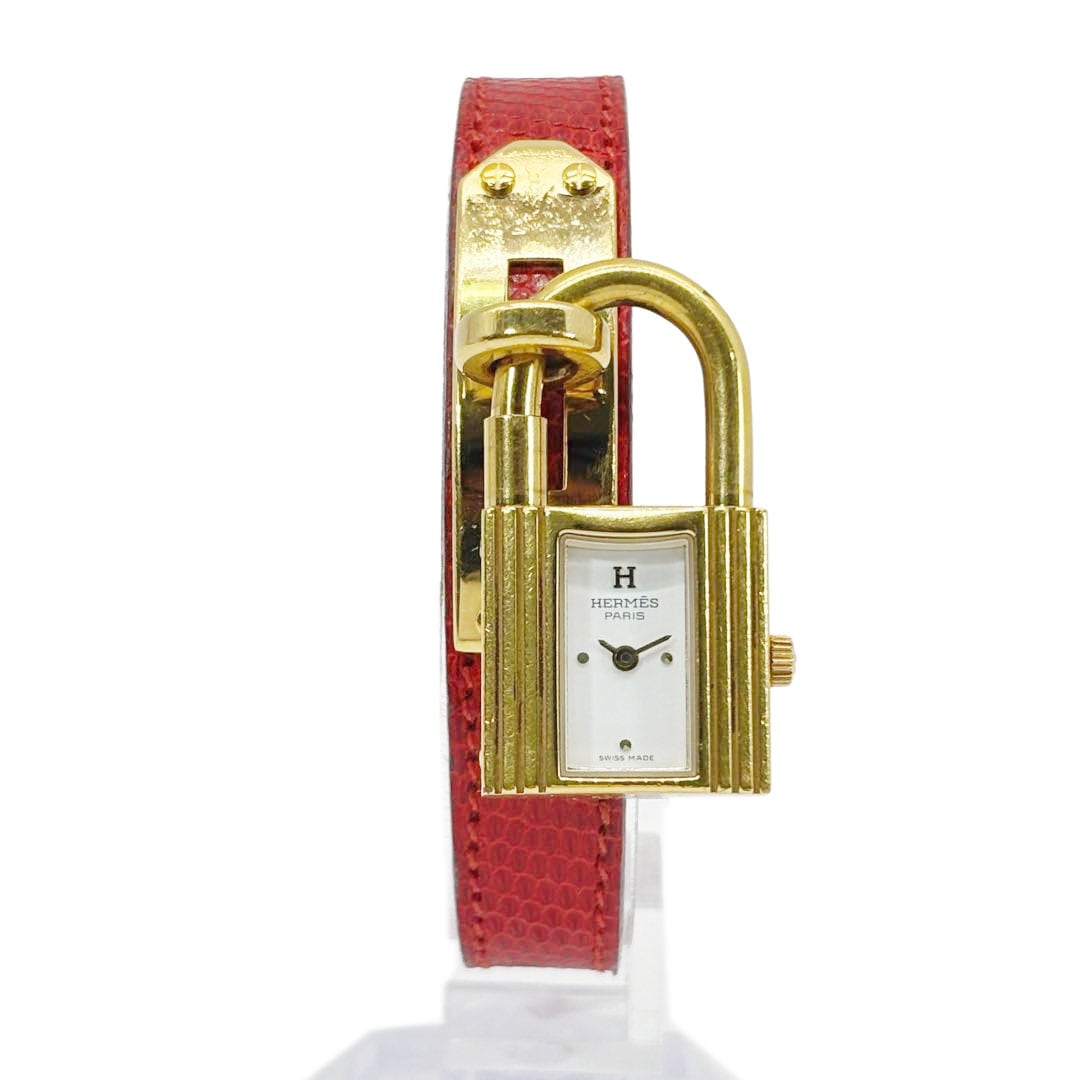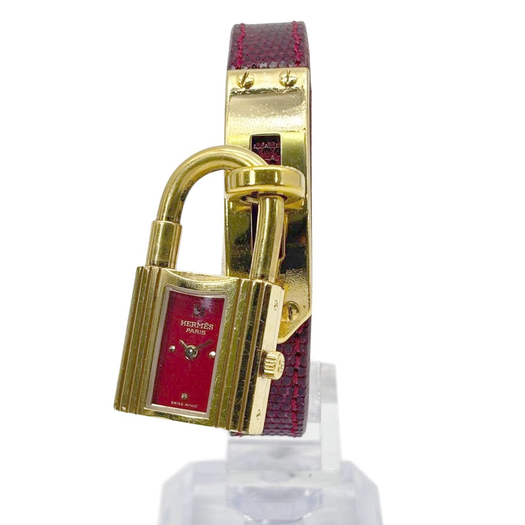 HERMES エルメス ケリーウォッチ 腕時計 GP リザード クオーツ ゴールド/白文字盤/赤ベルト ◯Z刻印