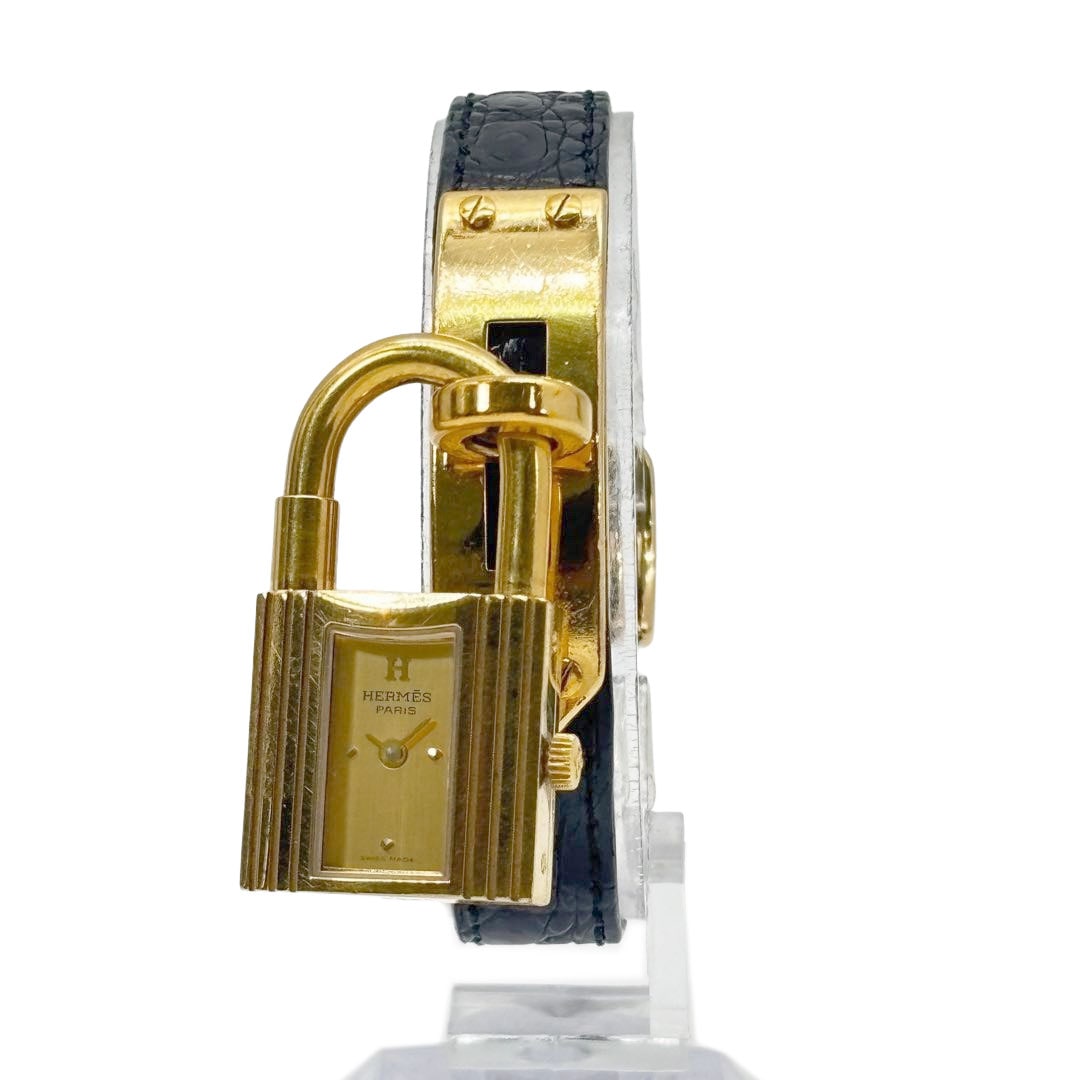 HERMES エルメス ケリーウォッチ 腕時計 GP クオーツ ゴールド/ゴールド文字盤/社外黒ベルト
