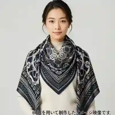 サイズ: 縦:約137cm タイトル:『Eperon d'Or Bandana』 (エプロン・ドール・バンダナ) 素材:カシミヤ70%、シルク30% カラー:Marine<マリン> Blanc<ホワイト> Noir<ブラック> 付属品:なし |