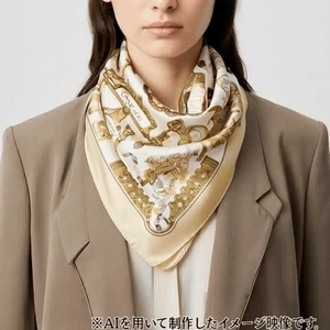 HERMES エルメス スカーフ カレ90 『Copeaux(おがくず柄)』 シルク ベージュ系 |