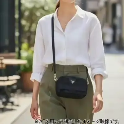 PRADA プラダ リボン ミニショルダーバッグ ナイロン ブラック/ゴールド金具 |